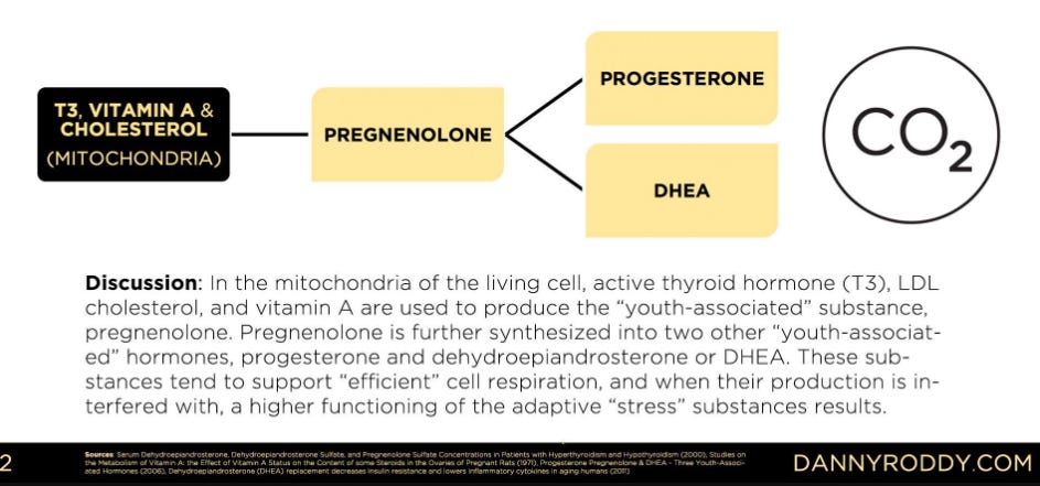 Allowing production of the youth steroid hormones “pregnenolone”, “progesterone, “DHEA”